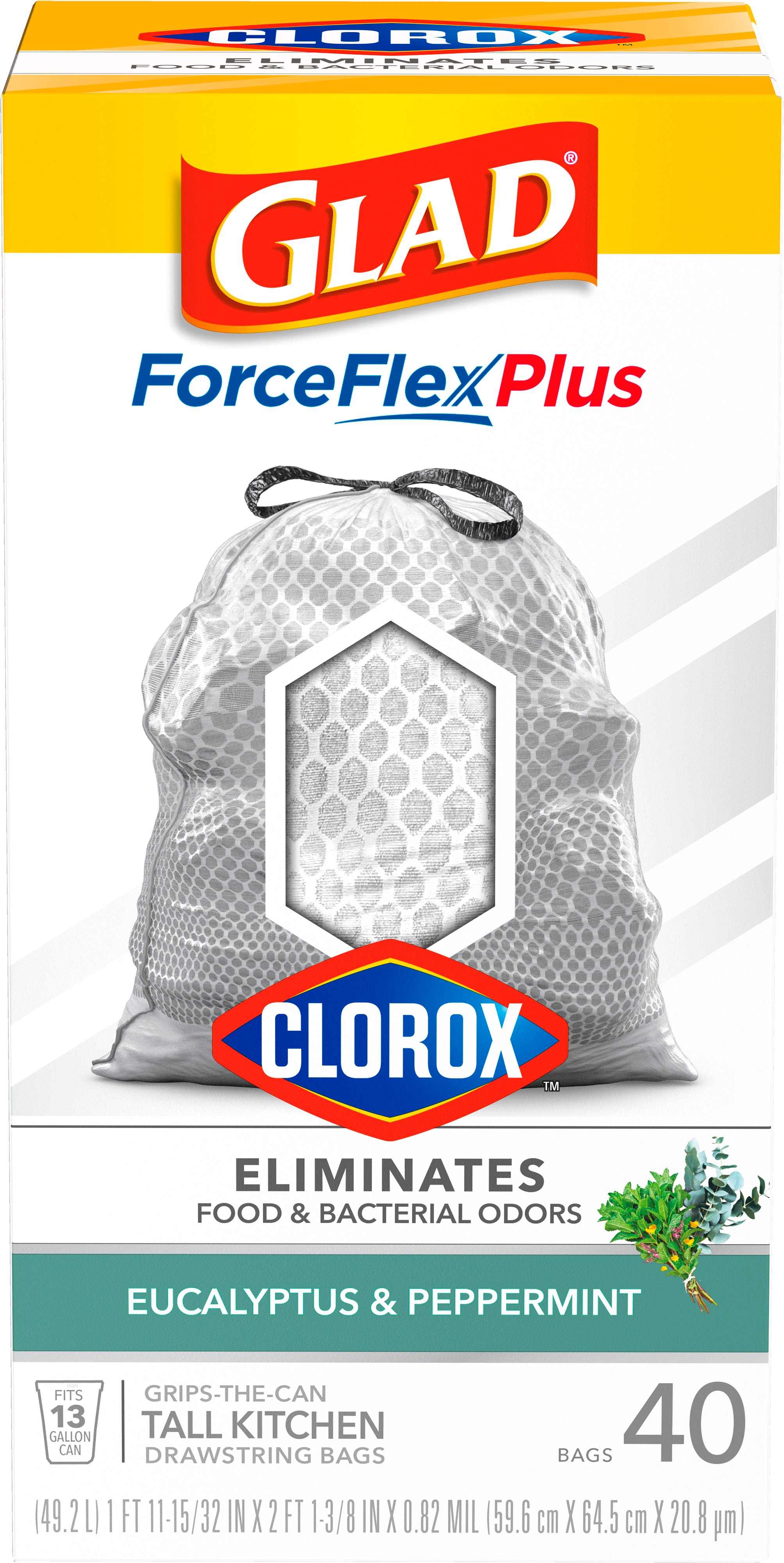 Glad ForceFlexPlus with Clorox Tall Kitchen Trash Bags, 13 Gallon, 20 Glad Forceflex Plus Clorox eliminates food and bacterial odors: glad® forceflex plus with clorox™ tall kitchen trash bags eliminate food and bacterial odors to keep your home feeling clean and healthy. Superior strength and rip protection* 25% more durable †. glad trash bags, forceflexplus with clorox. 1m+ visitors in the past month Clorox helps you take control of the toughest food. Glad Forceflex Plus Clorox.